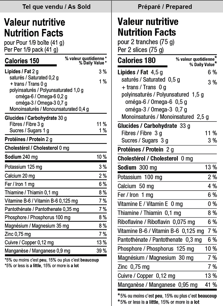 INGRÉDIENTS : MÉLANGE DE FARINES (RIZ BRUN*, QUINOA*, CHIA*, MILLET*), FÉCULE DE TAPIOCA*, FLOCONS (MILLET* ET/OU QUINOA*), LIN MOULU*, GOMME DE XANTHANE ET/OU GUAR, SEL DE MER. *BIOLOGIQUE